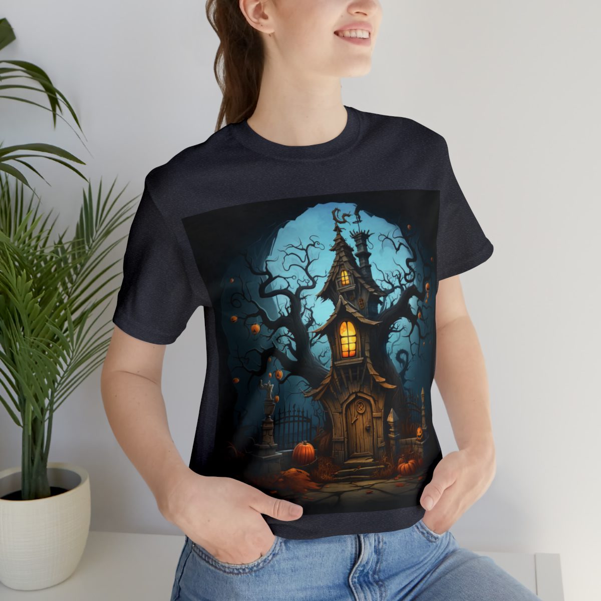 Playful, cute, and spooky all at once, this house in a tree trunk has pumpkin bird houses on its barren limbs. A jack-o-lantern sits near the entrance and a curious inhabitant, no doubt, resides inside.