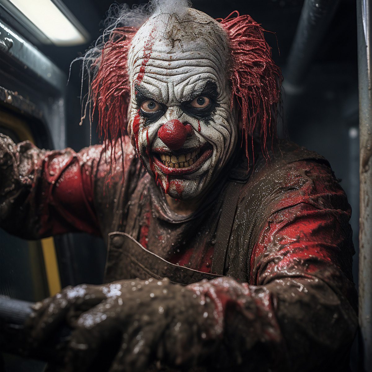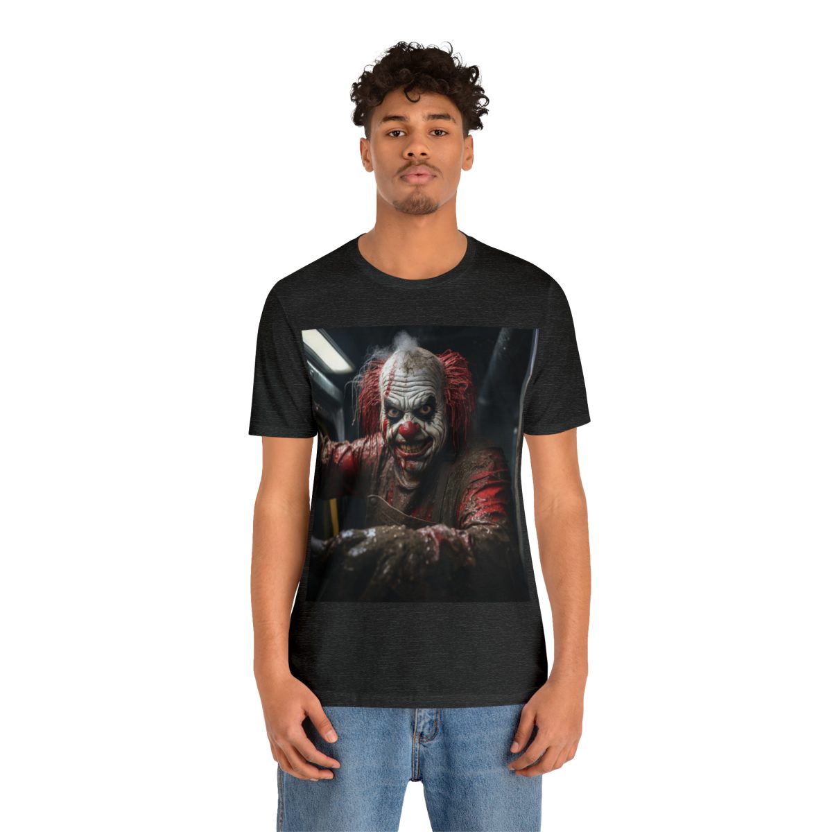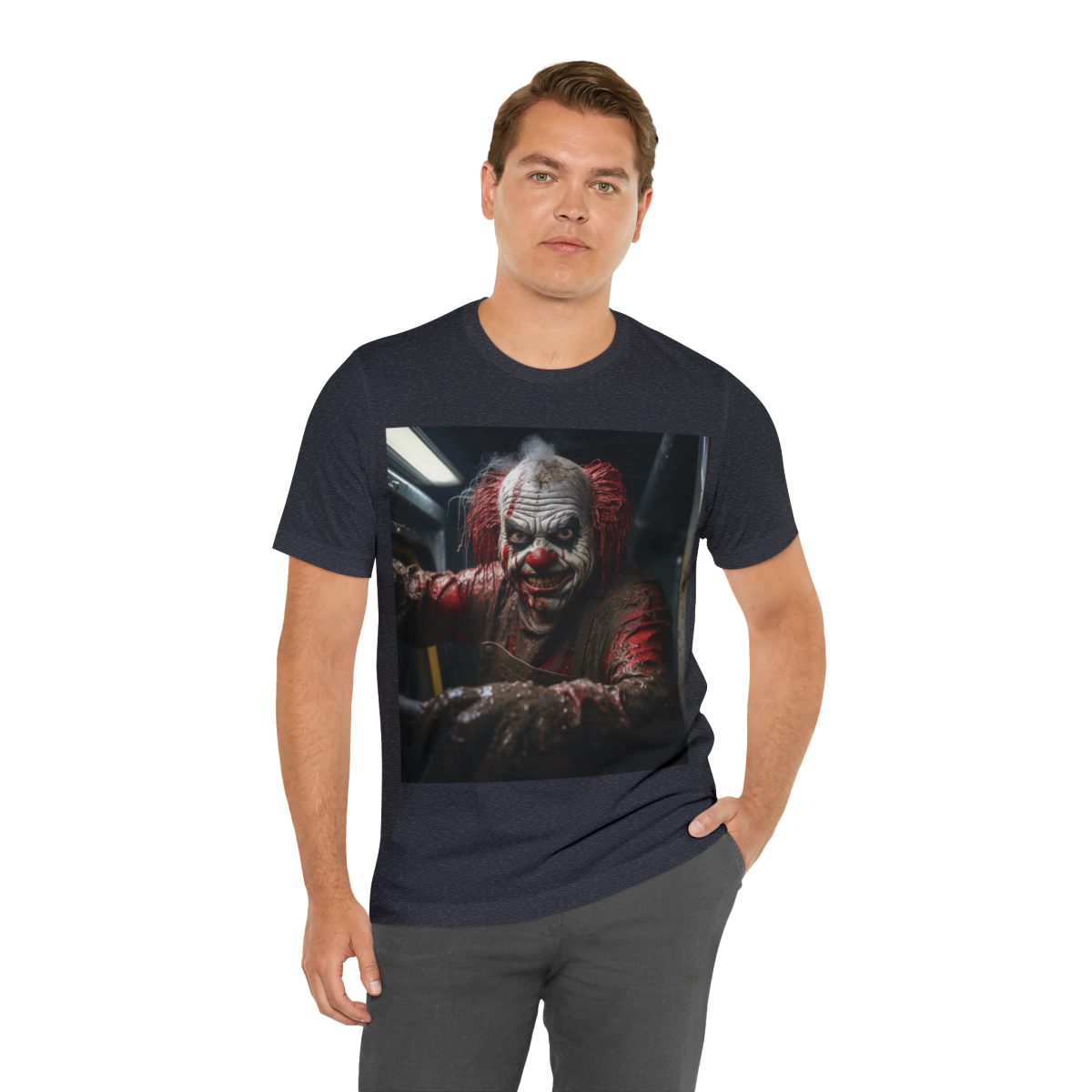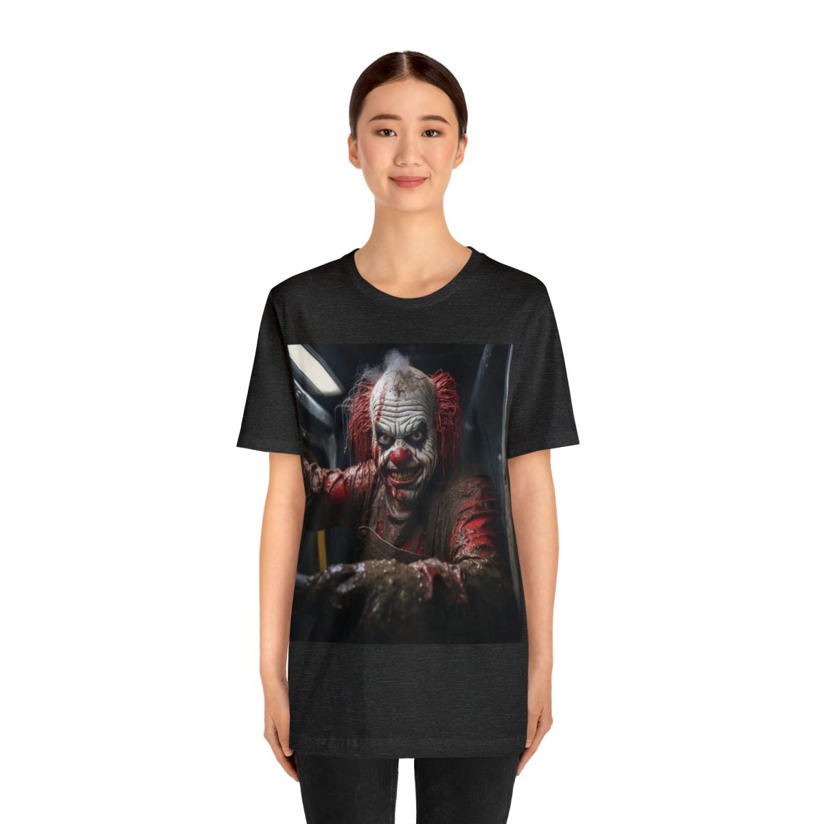 Hop in and buckle up for a wild ride with our messy, evil clown! Fresh from a mud-slinging (we hope!) adventure, this vibrant clown, decked out in a gooey, slimy, ooze covered suit, is all set to hit the road as he meets you in a car wash! But wait, did he just finish a performance or get into a sewer fight or worse? — With this shirt, you’re not just wearing a design; you’re donning a story that’s bound to get some laughs and stares. So, get ready for some conversational slapstick fun everywhere ya go!