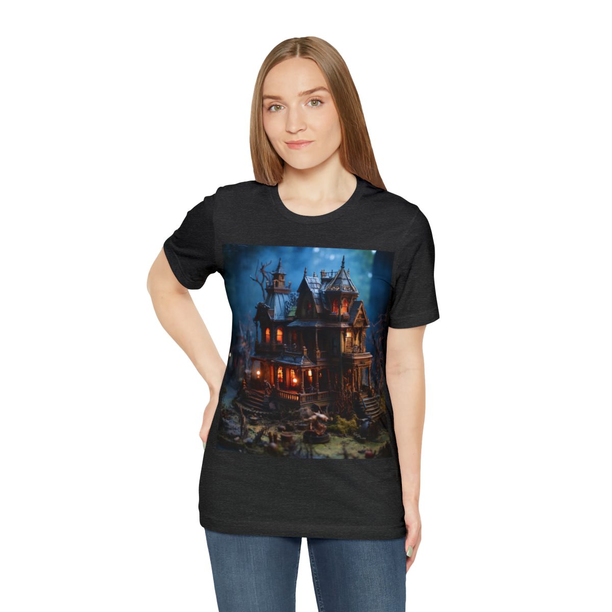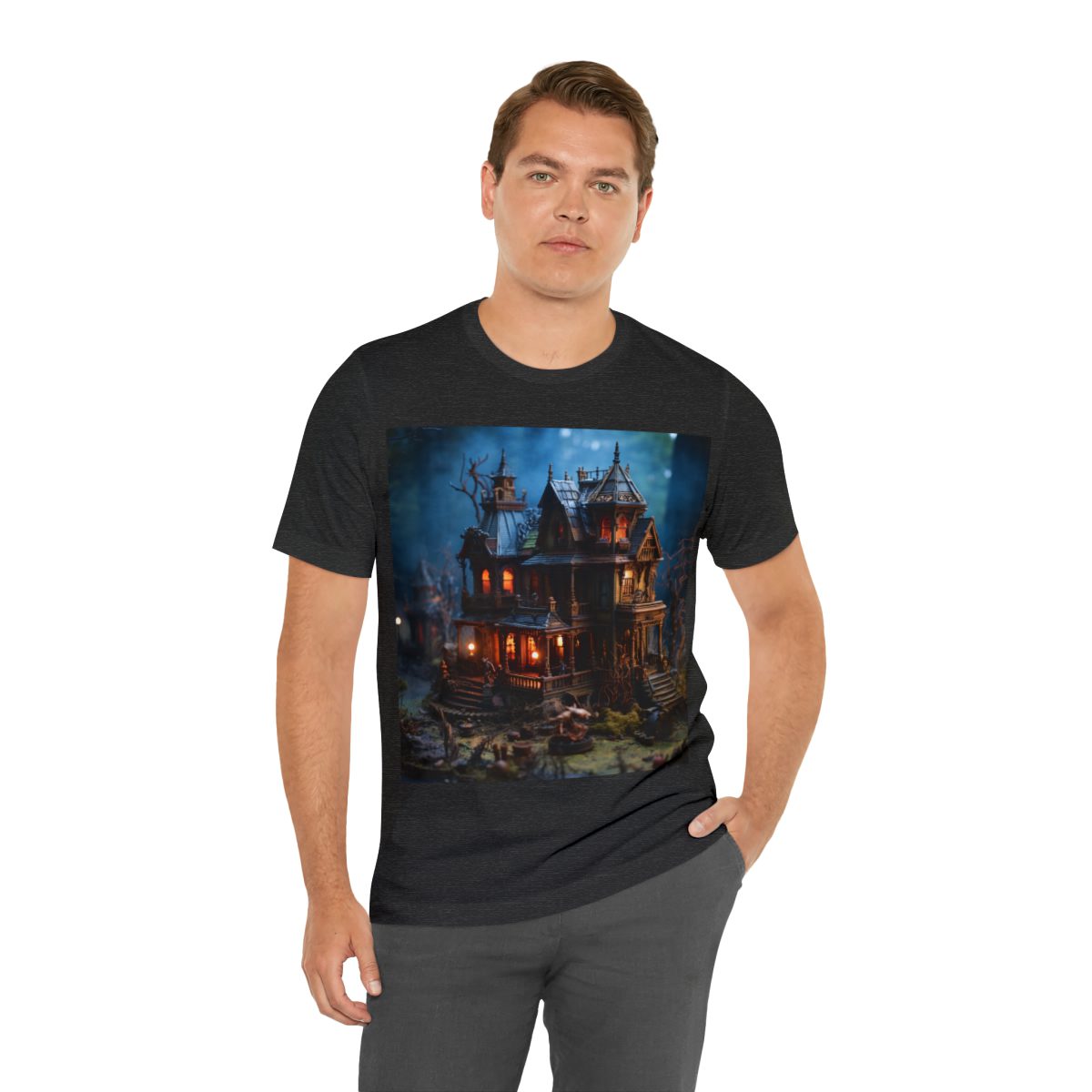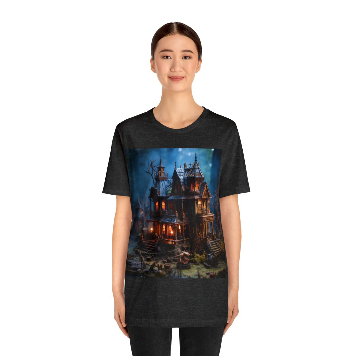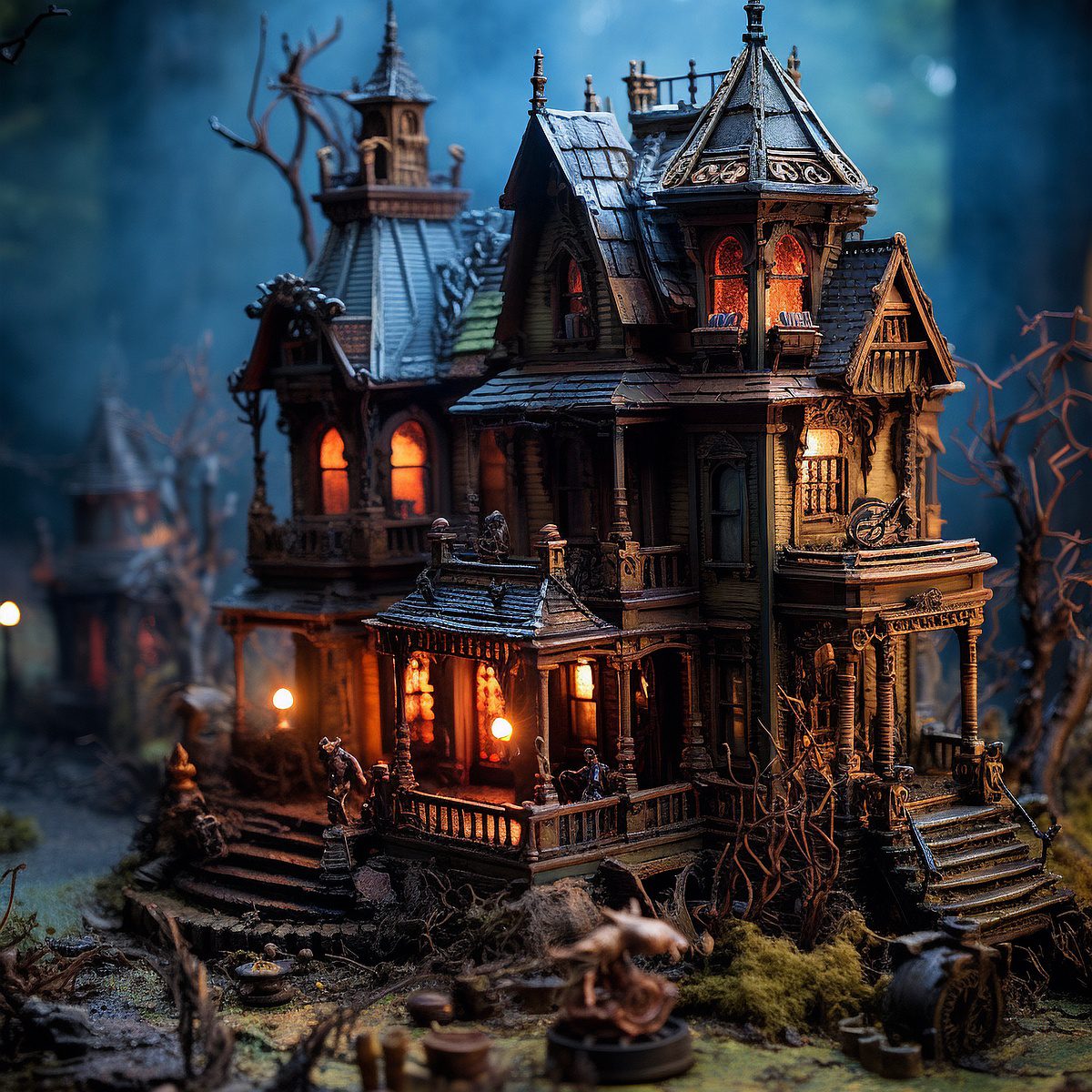 Is that a werewolf walking down the porch stairway? Is a zombie near the porch rail? This scary house isn’t so scary when you consider it’s super, duper small. Let your imagination run free without fear of being scared because that werewolf has less bite strength than a mosquito. — In fact, he’s cute and would make a great pet!