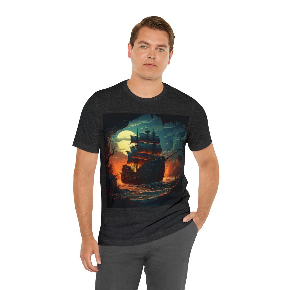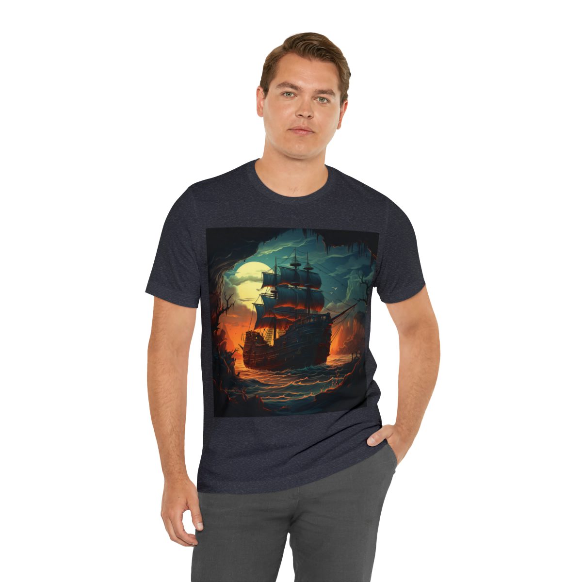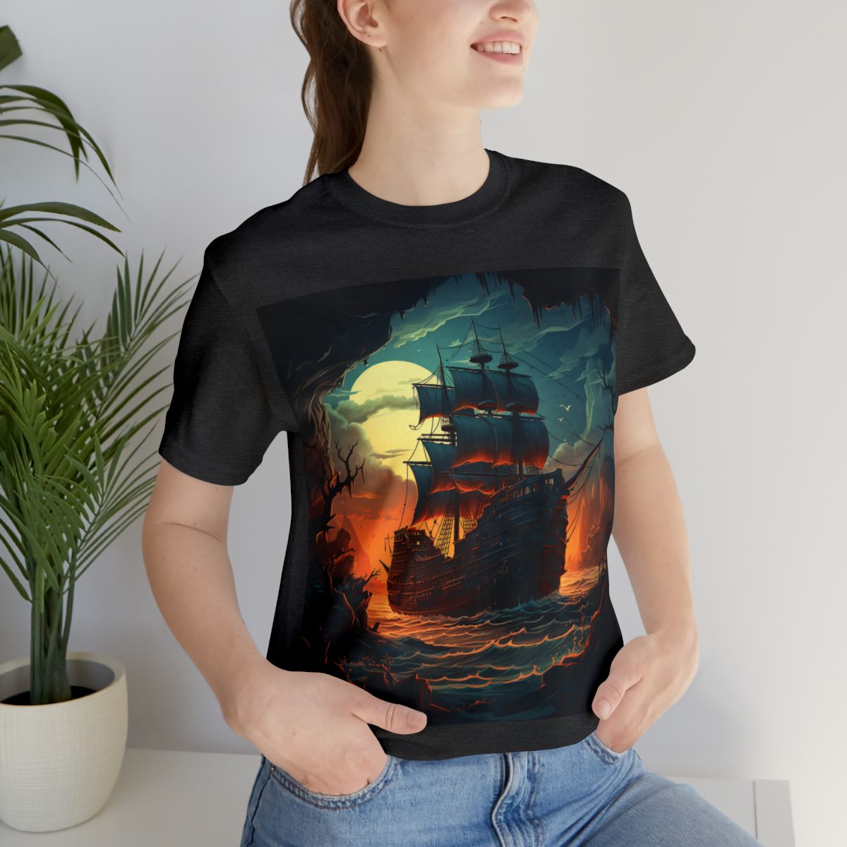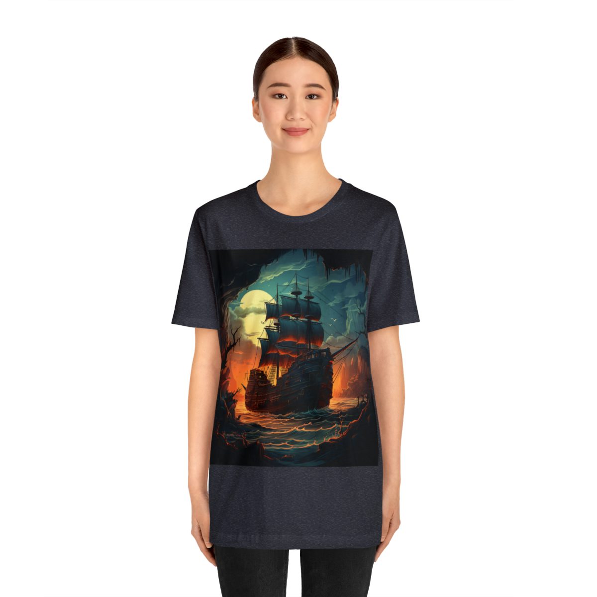As a pirate ship sails closer to the cave you’ve found refuge in, the moon’s glow casts a dreamy light over everything, especially the waters. But there’s also the warm, inviting light of the distant sunset, adding a bit of magic to the scene. Together, these colors weave a story that feels both peaceful and thrilling, pulling you right into the heart of the night’s mystery.