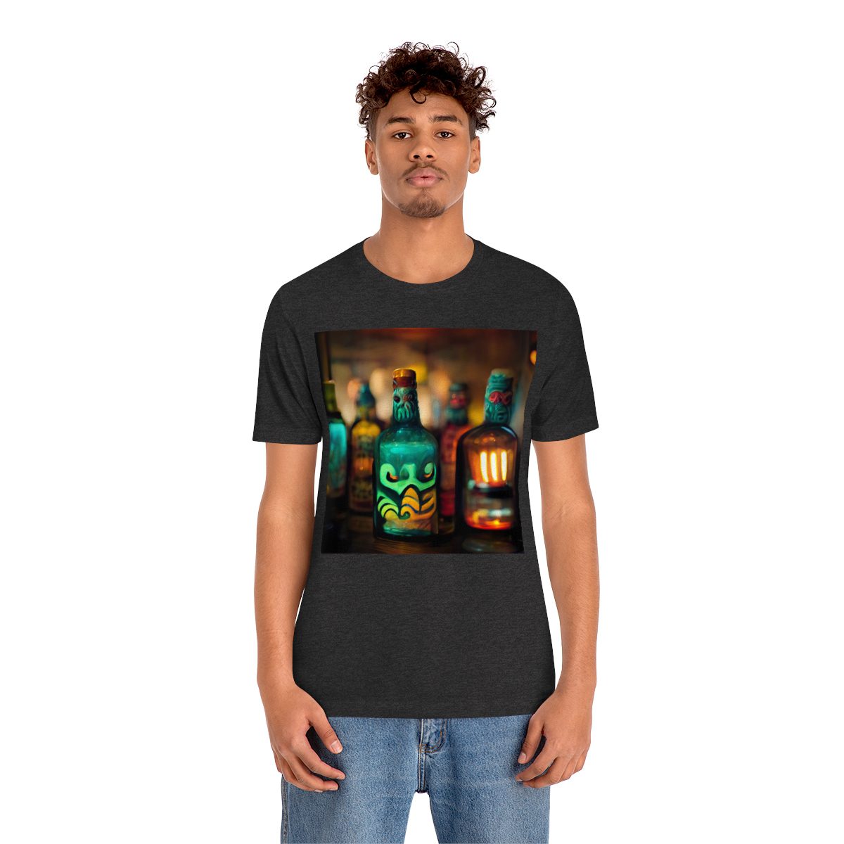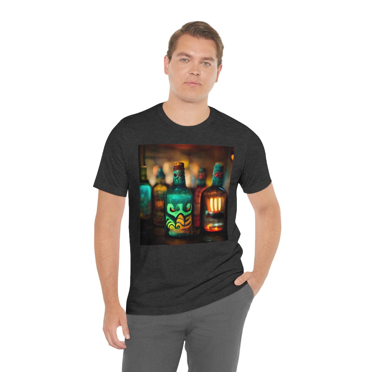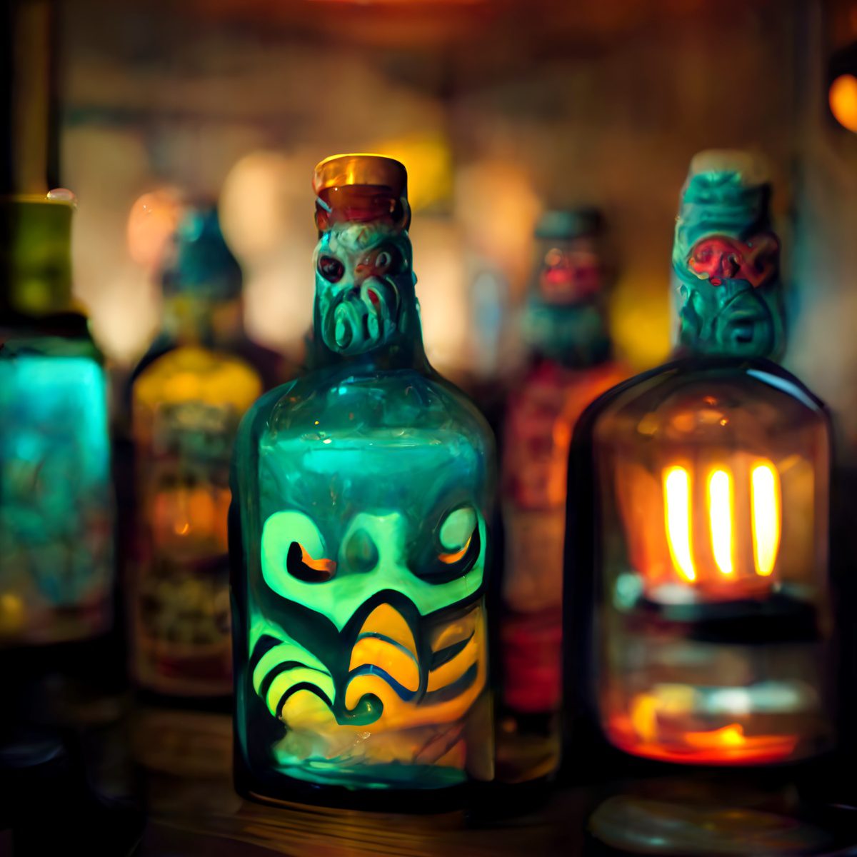 Vintage Tiki Rum Bottles Ornately Decorated With Illuminated Interiors Decorate A Dimly Lit Room