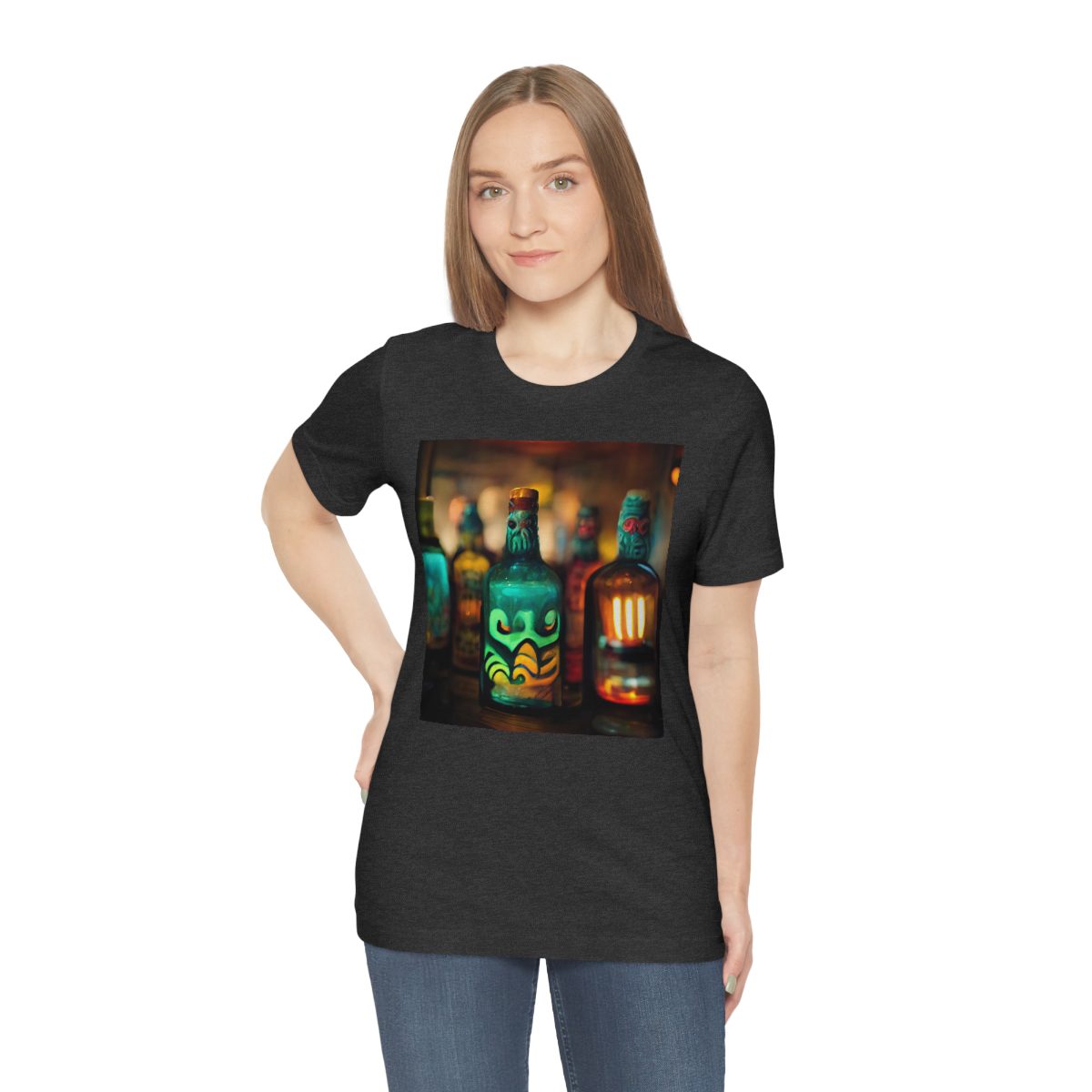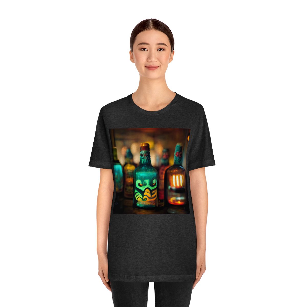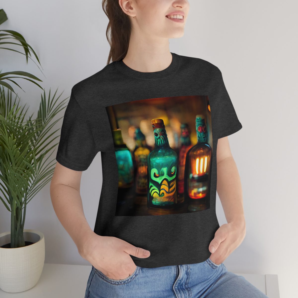 Vintage Tiki Rum Bottles Ornately Decorated With Illuminated Interiors Decorate A Dimly Lit Room