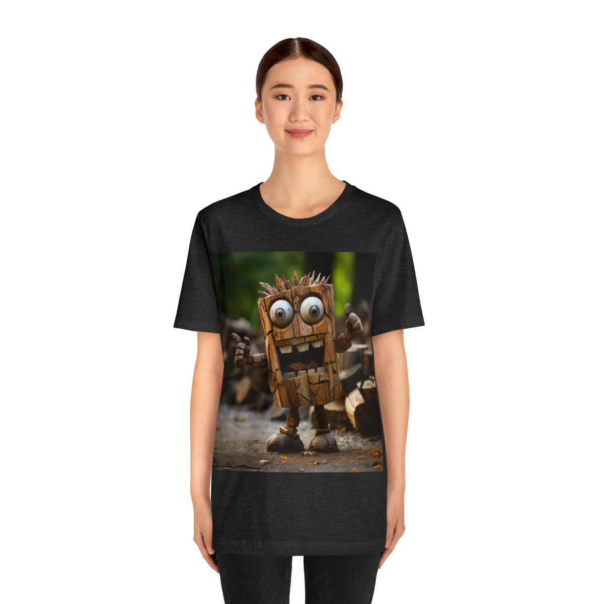 Discover the magic hidden within the wood with our enchanting design. Amidst the towering trees and lumber, a delightful wooden creature comes to life, its eyes sparkling with mischief and wonder. What mischief will be on his list today?
